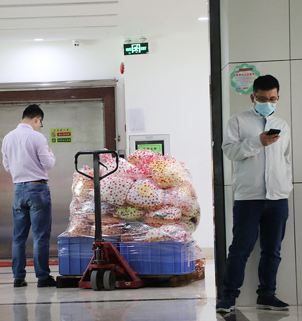 早上我們將昨天打包好的禮物裝好,整整的兩大叉車(恒泰目前近260位女神)。